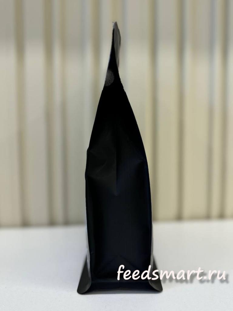 Еще одной заметной деталью на лицевой стороне является фотография свежих сочных кусков розового филе индейки. Такие изображения, безусловно, привлекают внимание и выглядят эффектно на упаковках готовых рационов. Мы уточнили — список состава действительно включает индейку, подтверждая достоверность иллюстрации.