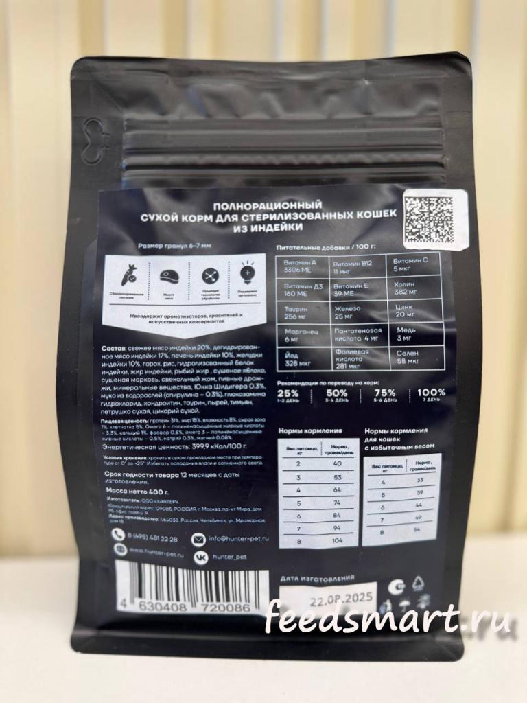 В данном обзоре мы проанализировали упаковку и список состава сухого корма российского производства «Индейка» от HUNTERPET, предназначенного для взрослых стерилизованных кошек любых пород. И подробно раскрыли все важнейшие аспекты ингредиентов и упаковки, чтобы владельцы получили полное и объективное понимание этого рациона и смогли сделать действительно осознанный и обоснованный выбор питания для своих питомцев.