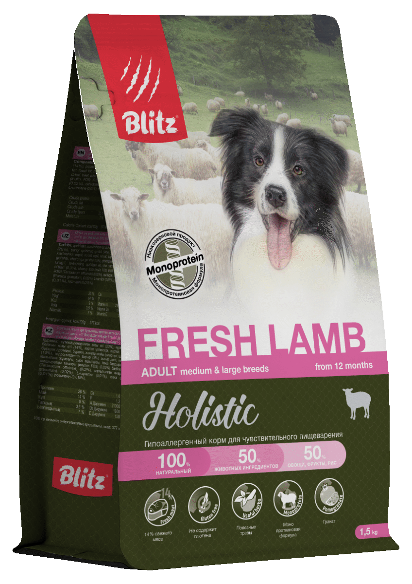 Пример рекомендаций по кормлению взрослых собак разного размера готовым сухим кормом при сравнительно низкой и умеренной активности приведён на основе монопротеинового продукта для собак средних и крупных пород Blitz Holistic СВЕЖИЙ ЯГНЁНОК, который мы рекомендуем питомцам с нежелательными реакциями кожи или чувствительным пищеварением.